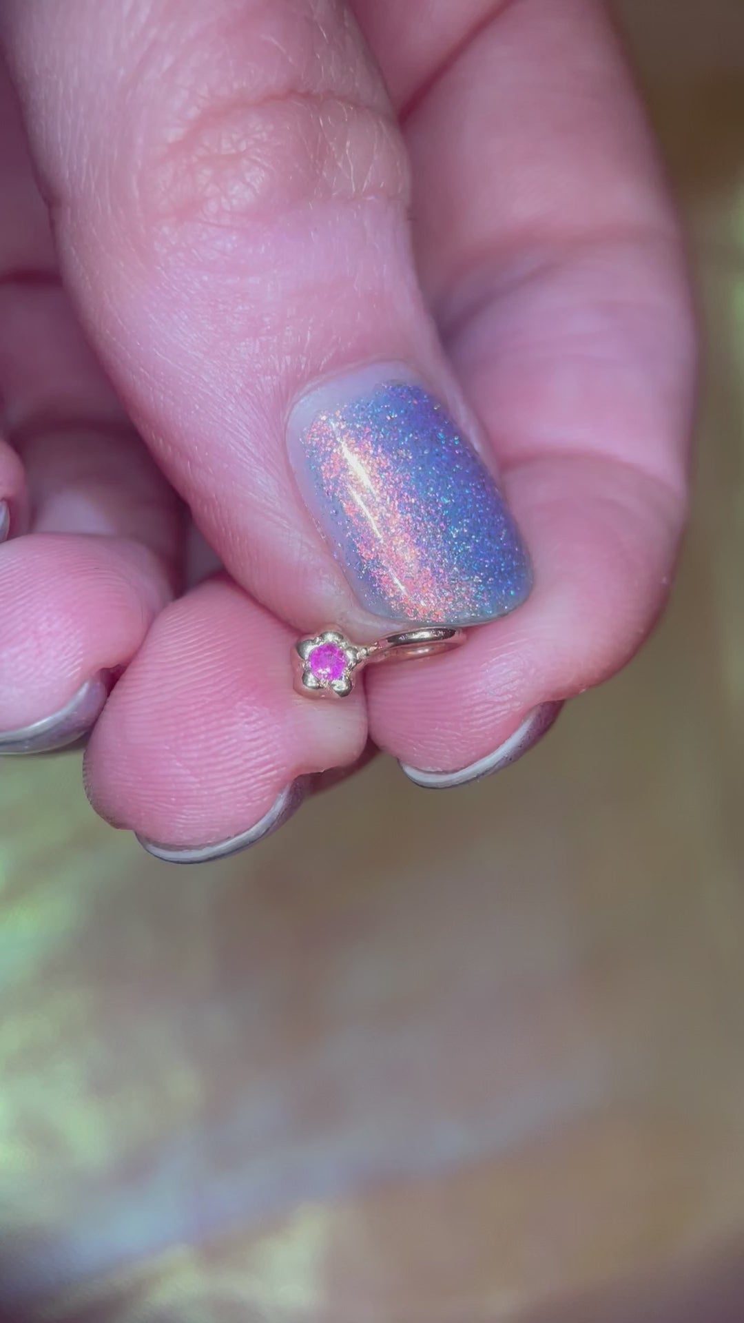 lil mini daisy charm with a pink ruby center stone in 14k yellow gold